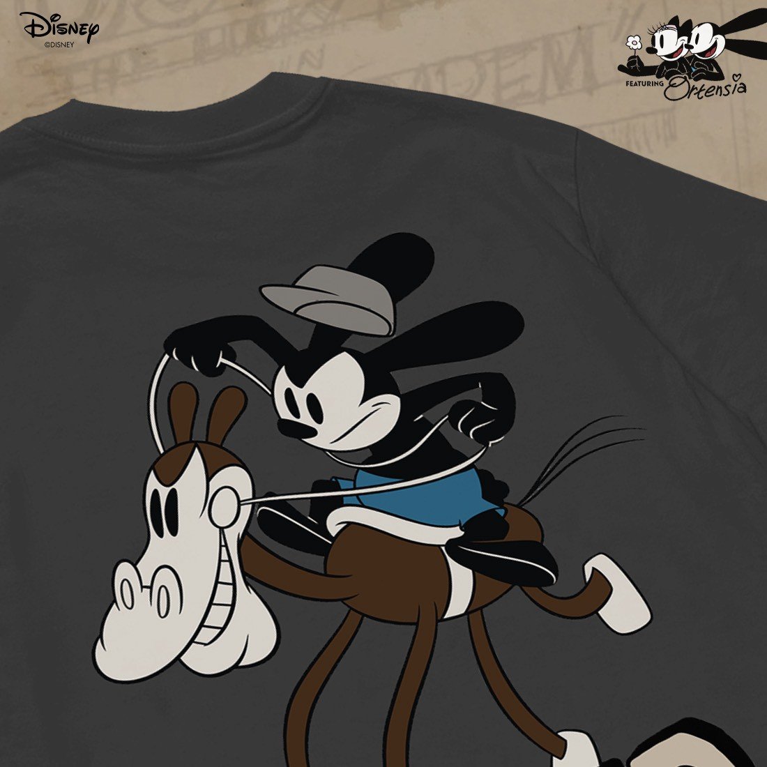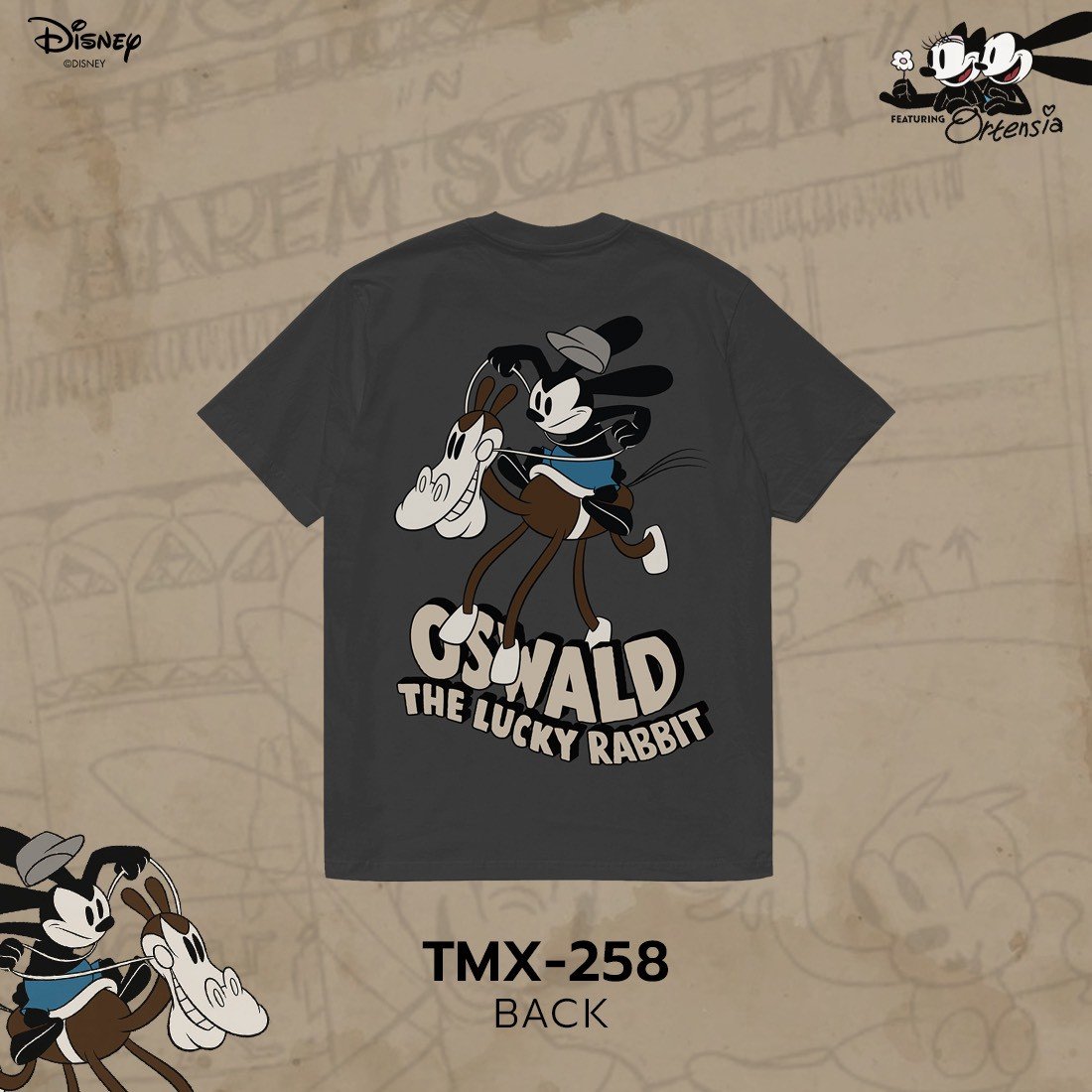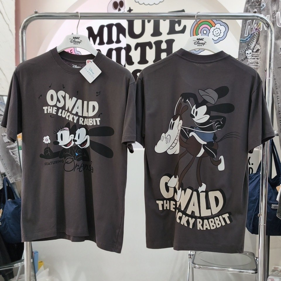 Power 7 Shop เสื้อยืดการ์ตูน "Oswald the Lucky Rabbit" ลิขสิทธิ์แท้ DISNEY (TMX-258-สีเทาเข้ม)
